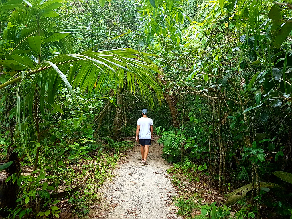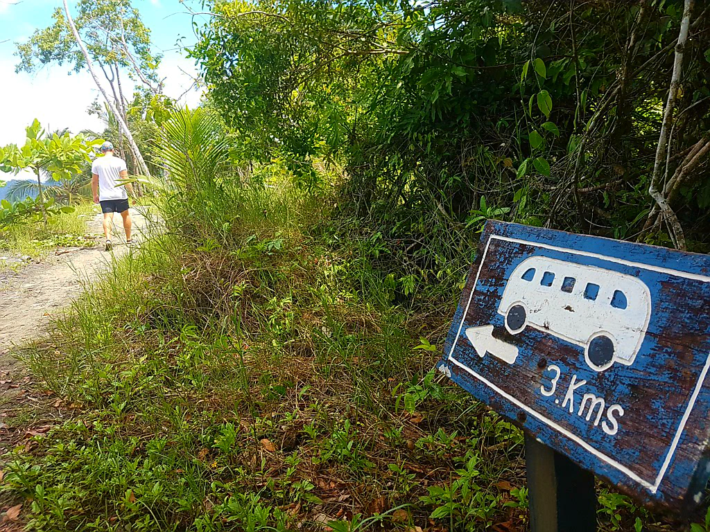 Wir nahmen den Bus in den eine halbe Stunde entfernten Nationalpark Cahuita, der direkt am Strand entlang verläuft. Man kann ihn auf einem 10 km Wanderweg einmal durchqueren und vom anderen Ende des Parks den Bus zurück nach Puerto Viejo nehmen. So hatten wir den ganzen Tag das Meer zu unserer linken Seite.