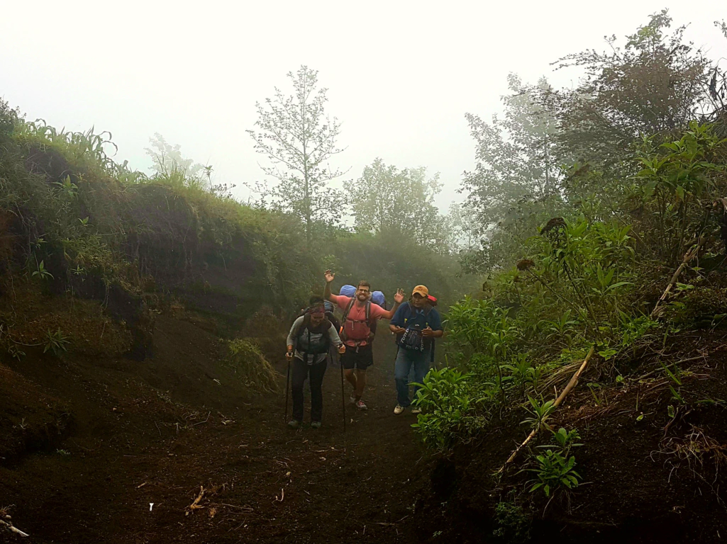 Auf halbem Wege spürten wir plötzlich Tropfen auf der Haut. Allerdings waren es keine Wassertropfen sondern ein Ascheregen des Vulkans!