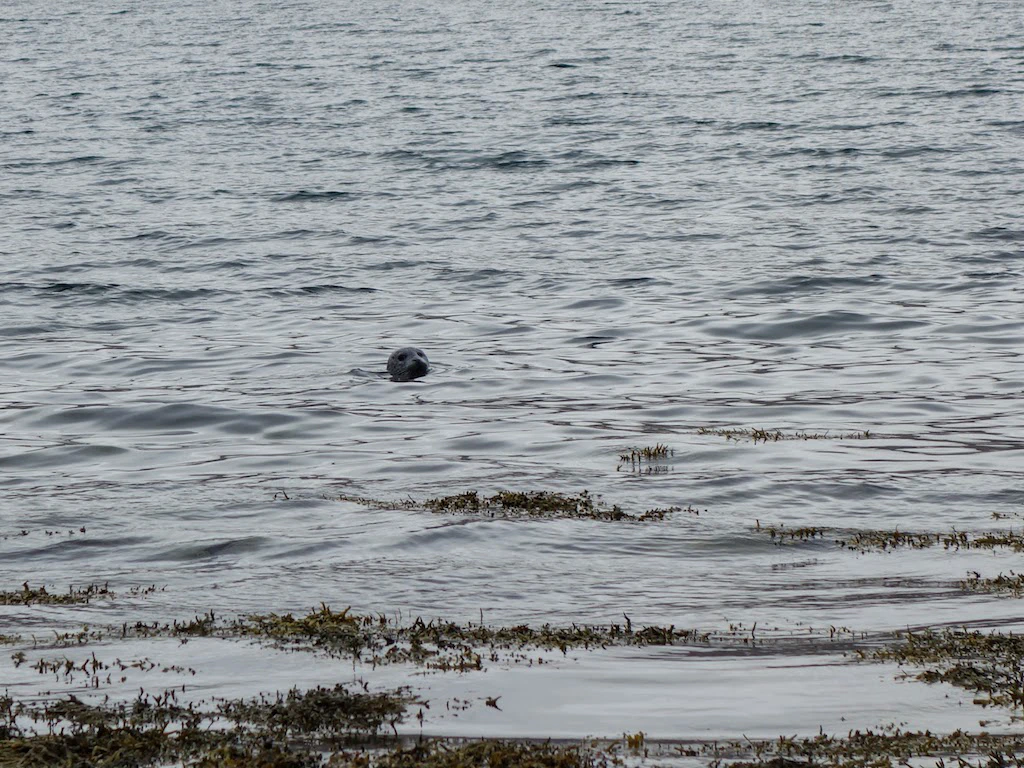 Während wir zum Wasserfall Dynjandi fuhren entdeckten wir diese Robbe im Wasser. Dass es eine Robbe war, war jetzt natürlich nichts Besonderes, aber als wir sie erspähten, verspeiste sie gerade genüsslich einen dicken, frisch gefangenen Fisch. Das war schon ziemlich spektakulär anzusehen! Leider hatte sie den Fisch gerade heruntergeschlungen, als ich mit meiner Kamera bei ihr war…