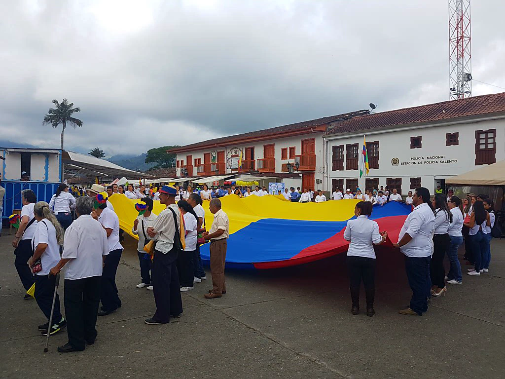Da die Kolumbianer an diesem Tag ihre Unabhängigkeit feierten, war auf dem Marktplatz und in der Tourigasse einiges los: Das Militär patroullierte, bunte Mini-Jeeps fuhren umher und eine riesige kolumbianische Fahne wurde über den Platz getragen.