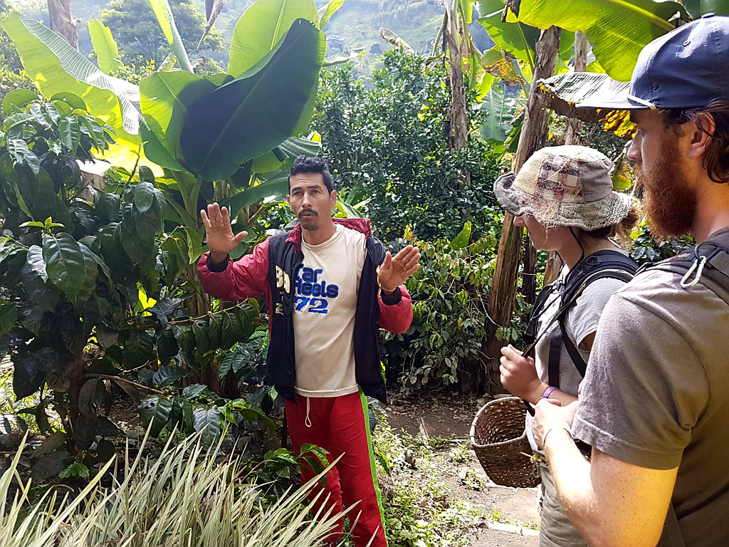 Da wir an unserem ersten gemeinsamen Tag nicht aus unseren gemächlichen Rhythmus gebracht werden wollten, entschieden wir uns für eine kleine aber feine Führung über die Plantage von Don Elias, ein uriger alteingesessener Kolumbianer. Seine Kaffeeernte geht nicht in den kommerziellen Verkauf, sondern kann nur von Besuchern seiner Plantage erworben werden und deckt natürlich den Eigenverbrauch. Dabei behält er nur die Bohnen 2. Klasse für den Eigenbedarf, die guten Bohnen gehen in den Verkauf - wie überall in Kolumbien.