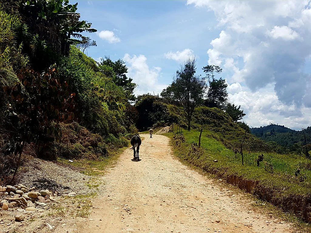 Als ich drei Viertel des Weges zurückgelegt hatte und mir ausrechnete, dass es noch etwa eine Stunde zum Piedra del Peñol sein müsste (von wo es zwar immer noch 4 km zu unserem Hostel wären, aber immerhin kann man von dort ein Tuktuk nehmen), hielt ein Motorrad neben mir. Der Fahrer fragte mich, ob ich eine Mitfahrgelegenheit bräuchte. Mama, jetzt kurz nicht weiterlesen, aber ich dachte mir: Gott sei Dank und sprang auf. Als wir dann mit gefühlten 70 km/h über die Huckelpiste bretterten, wurde daraus eher ein Oh Gott, was habe ich mir dabei nur gedacht?! Vor allem als ich bei einem Hügel regelrecht vom Sattel abhob.