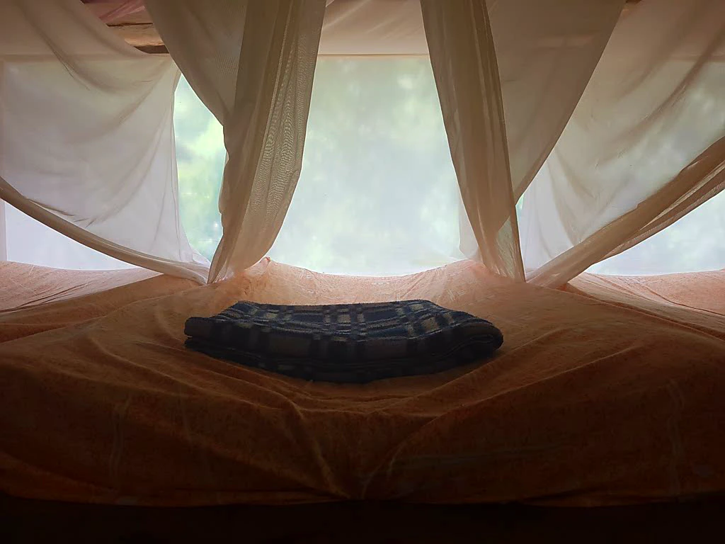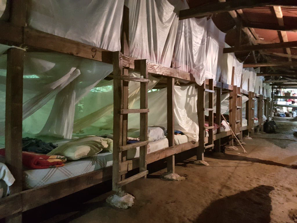 Im Camp stehen 20 doppelstöckige Betten aneinander gereiht, jedes mit einem Moskitonetz und einer sehr durchgelegenen Matratze ausgestattet. Von diesen Bettenreihen gibt es (je in einer separaten Hütte) drei Stück, so dass jede Gruppe zumindest in diesem ersten Camp etwas Privatsphäre hat.