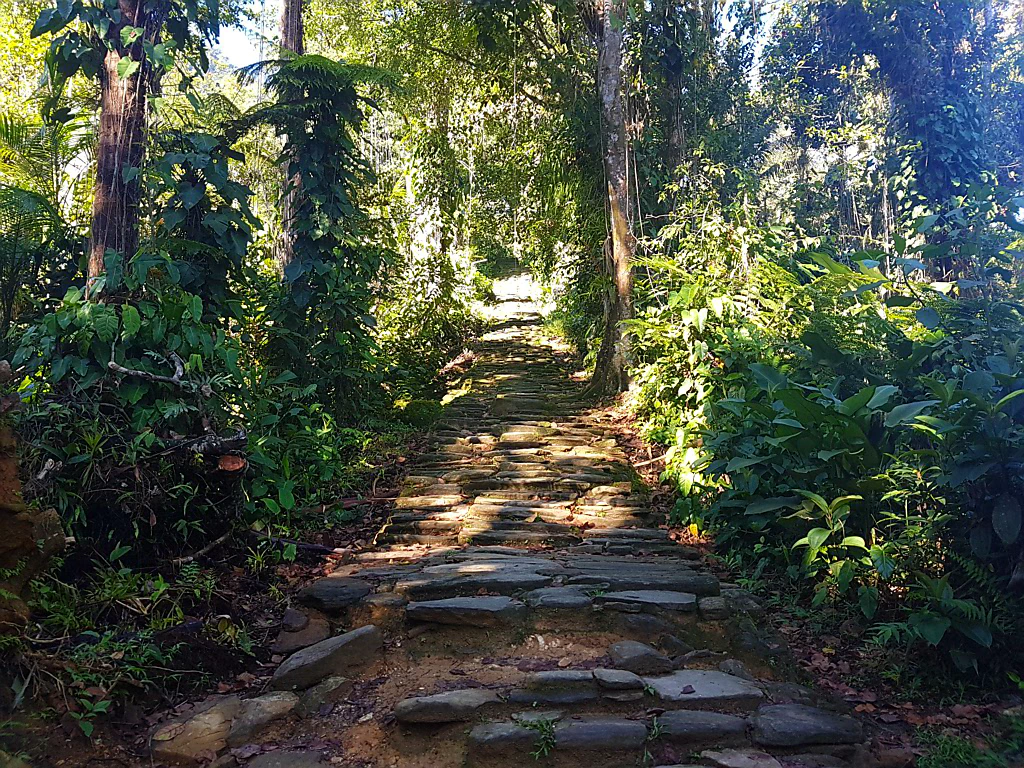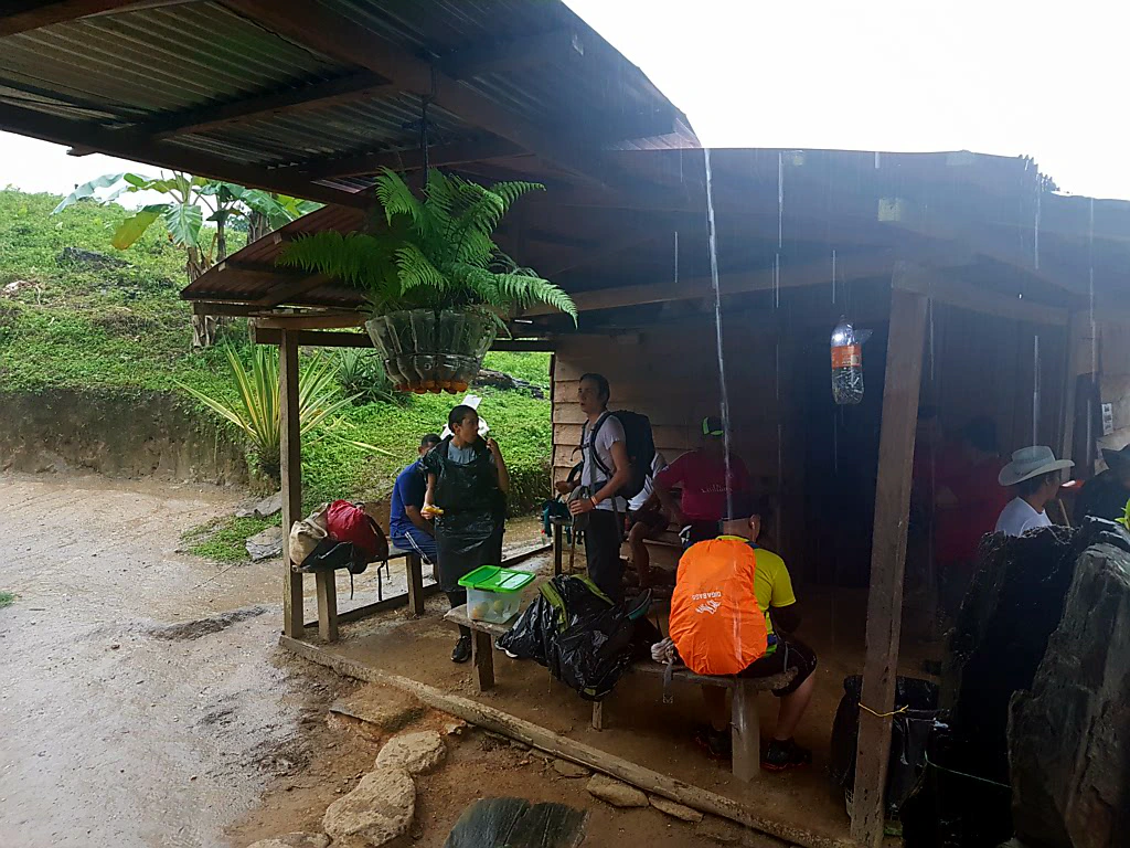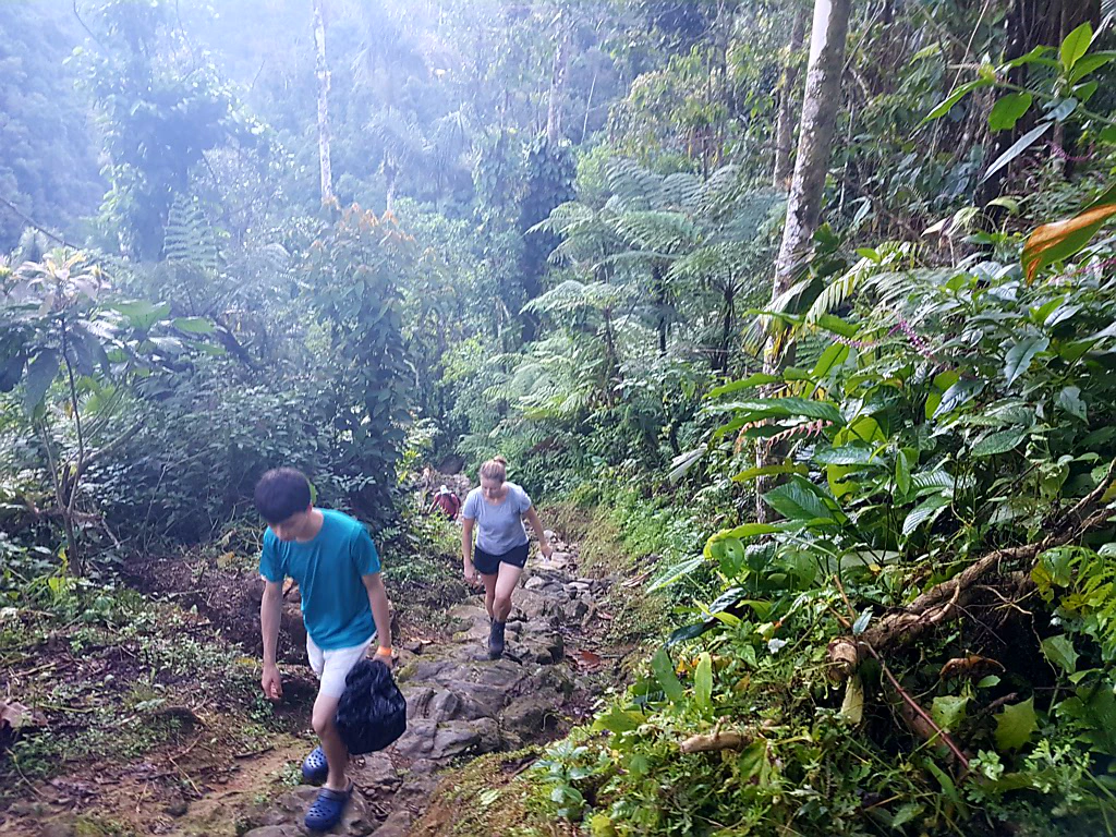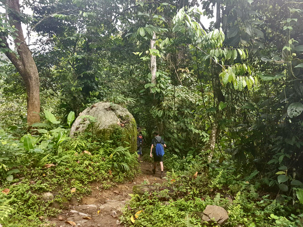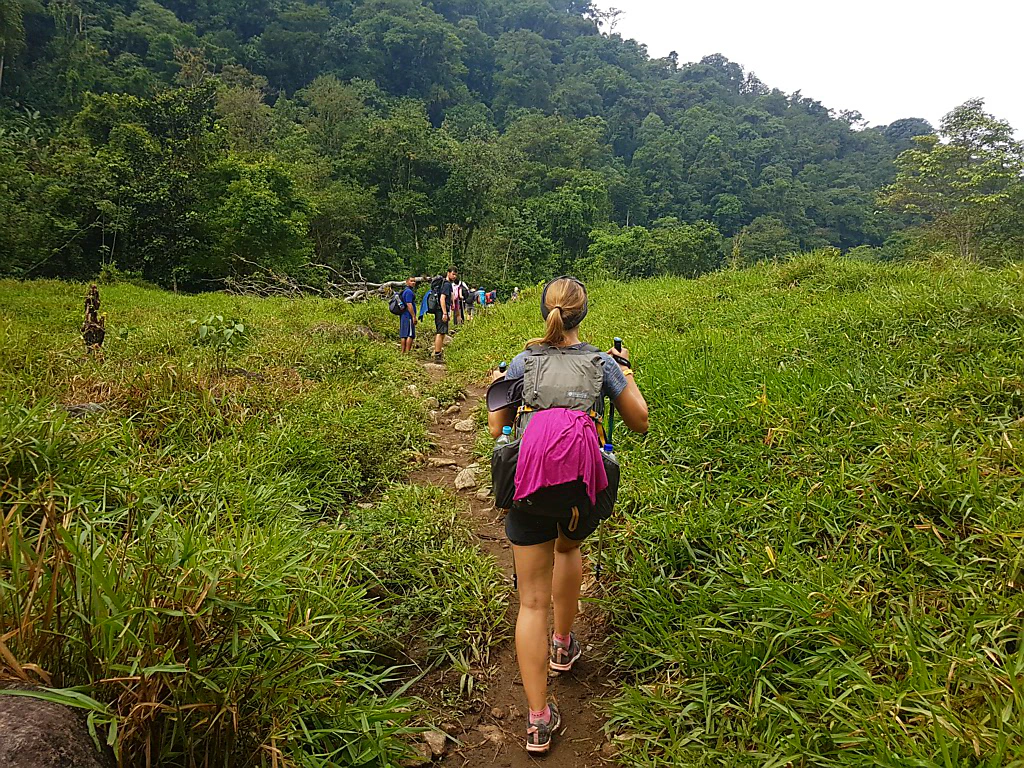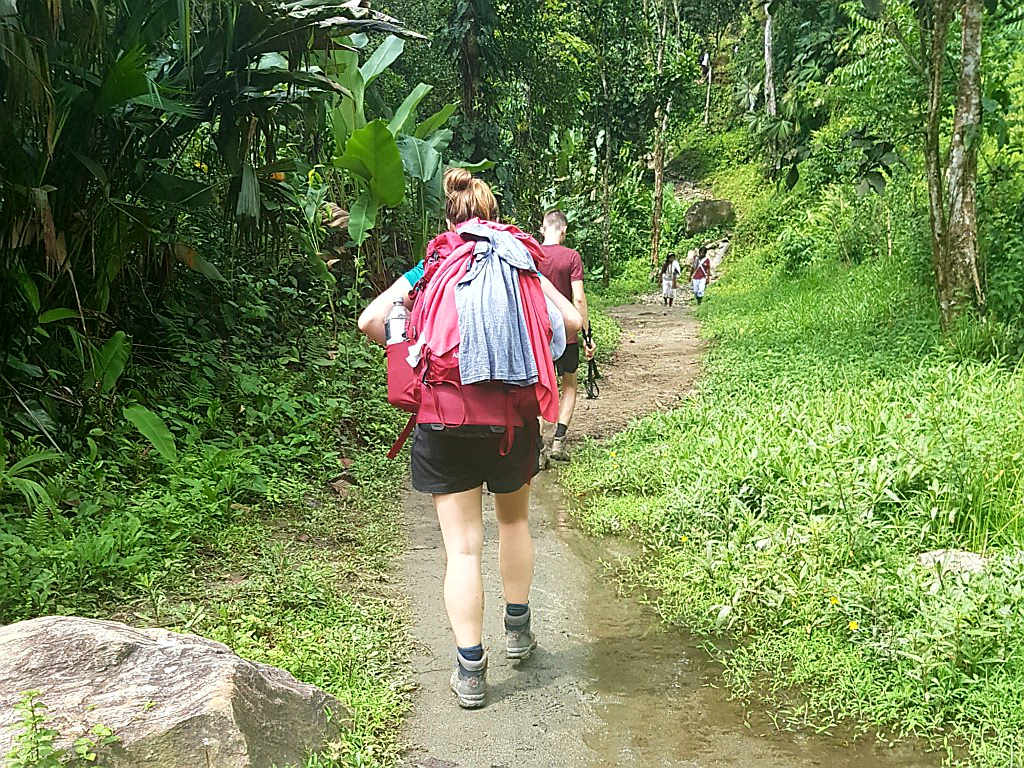 Der erste Tag ist nur ein halber Wandertag, die Sonne scheint, der Weg ist leicht - und dennoch sind wir nach 15 Minuten klitschnass. Vor der hohen Luftfeuchtigkeit gibt es einfach kein Entkommen!