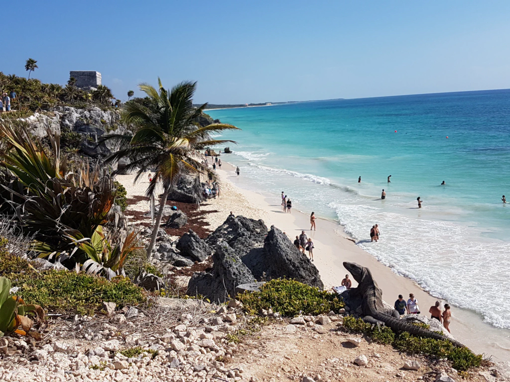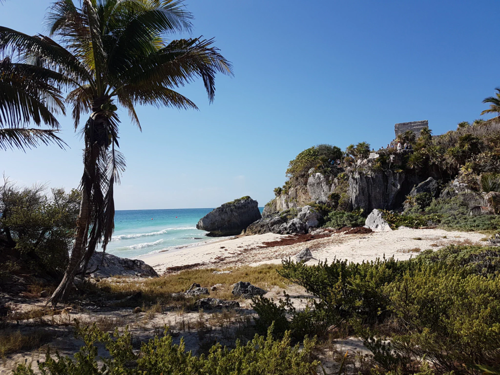 Am nächsten Tag wollten wir eigentlich ganz ganz früh zu den Ruinen von Tulum, um vor den Menschenmengen dort zu sein. Argh, aber irgendwie fällt uns das mit dem frühen Aufstehen doch schwer und so waren wir erst nach 9 Uhr dort. Da war es schon gar nicht mehr menschenleer!