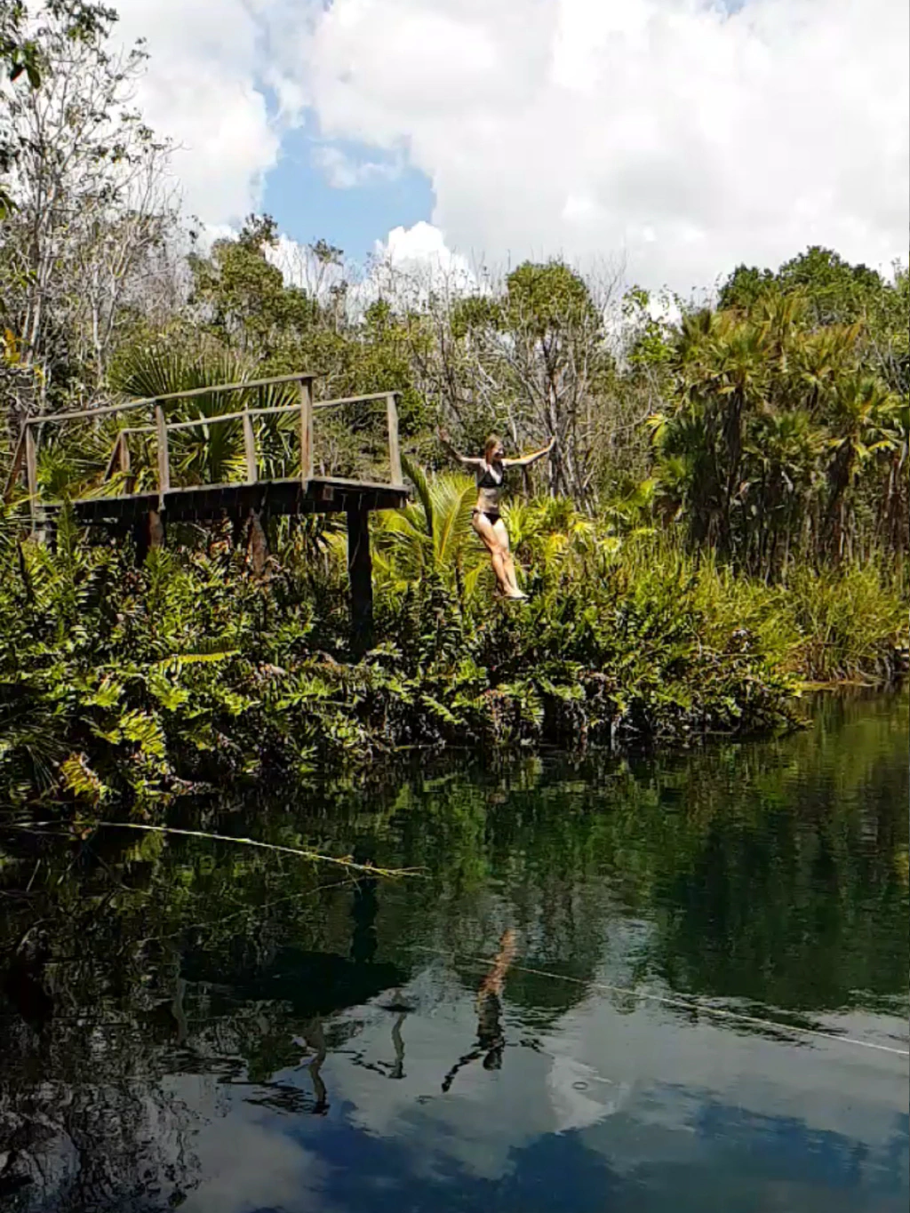 Highlight der Cenote Cristal ist der 3-4 Meter Turm, von dem man ins Wasser springen kann.