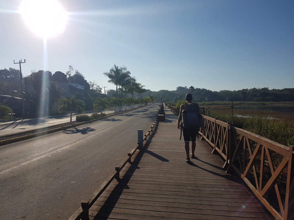 Nach ein paar relaxten Stunden am Strand, wollten wir noch in das Reservat Sian Ka’an weiterradeln, weil es dort einen schön angelegten Weg geben sollte, von dem aus man viele exotische Tiere sehen könne. Zumindest hatte ich das so in die (spanische!) Beschreibung unserer Gastgeberin hereininterpretiert. Nun ja, wir radelten und radelten, aber irgendwie kam da nichts mehr außer Straße und rechts und links eingezäuntem Dschungel.