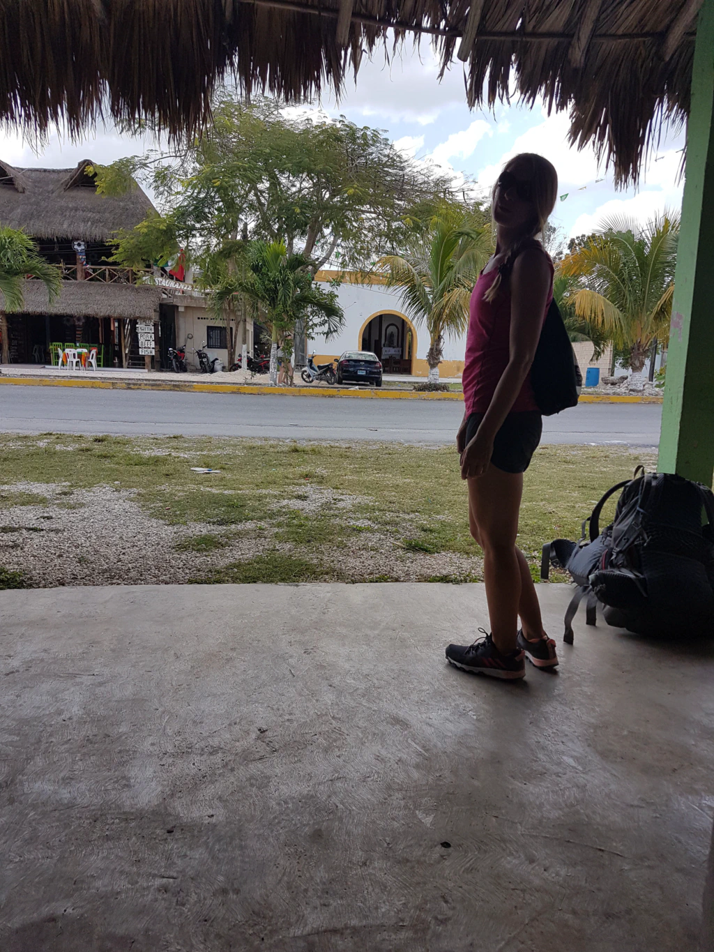 Ok, aber wir sind ja erprobte Per-Anhalter-Fahrer und so fragten wir die Leute, die die Ruinen verließen, ob sie zufällig nach Valladolid führen. Leider ohne Erfolg: Alle mussten in die entgegengesetzte Richtung nach Tulum. Das hatte ich mir irgendwie einfacher vorgestellt!