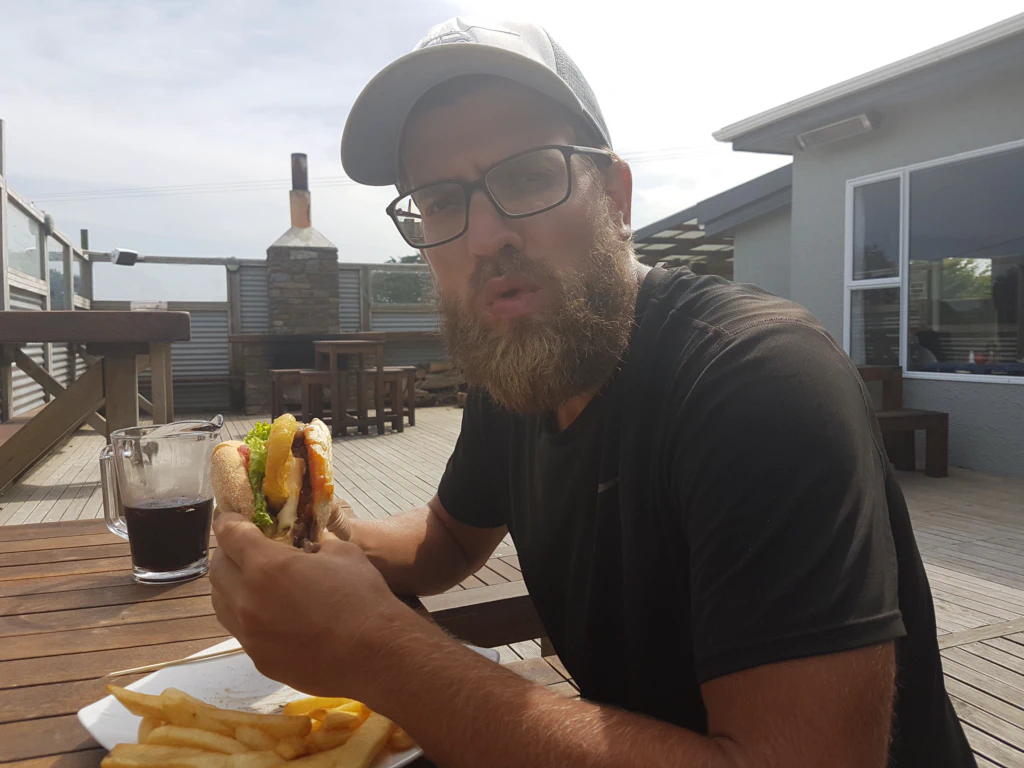 Am nächsten Morgen hatten wir genau ein Ziel vor Augen: einen Burger und eine Cola in der Taverne in Colac Bay. Vorher hieß es noch einige Kilometer Wald hinter uns zu bringen, doch tatsächlich erfüllte sich mittags unser Wunsch. Noch 78km bis Bluff…