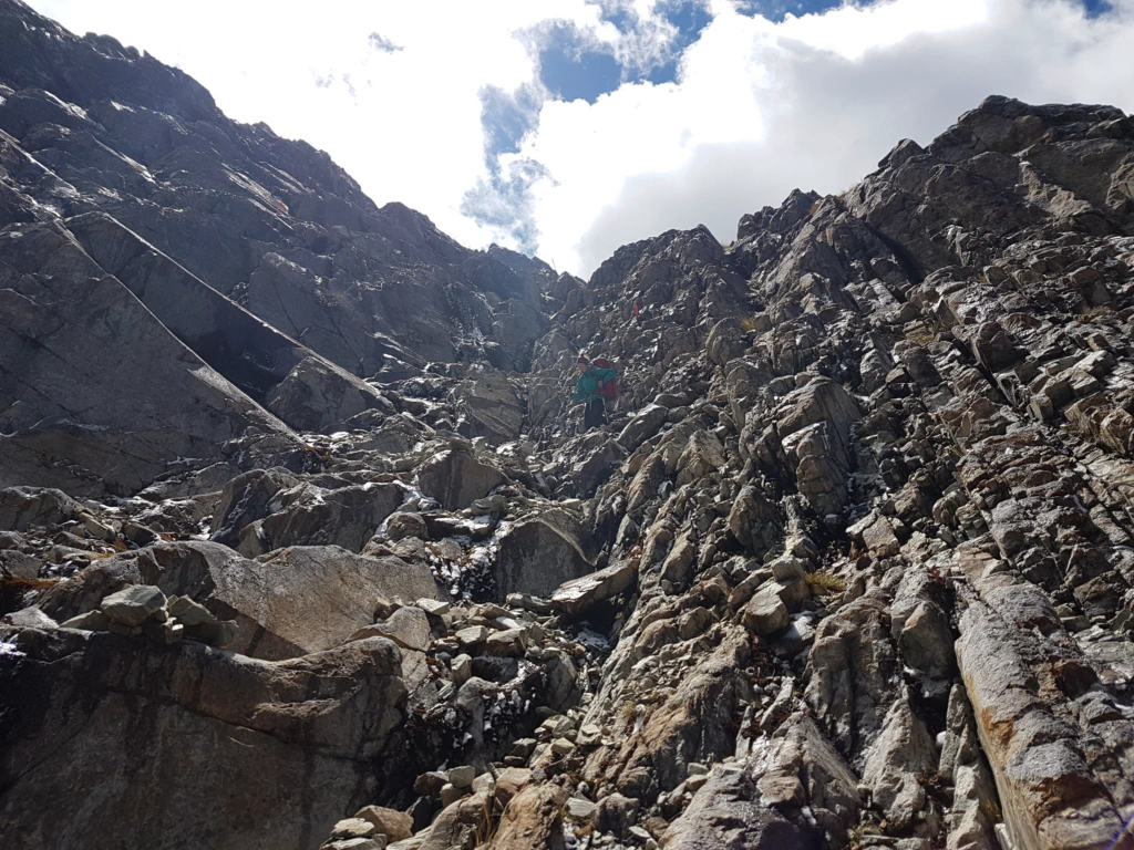 Die drei sind über den Pass gestiegen. Auf der anderen Seite flossen durch den Regen zig Bäche den Berg herunter. Sie haben sich so weit durchgekämpft, bis sie am Fuße des Berges auf einen Fluss stießen, der durch den Regen so sehr angestiegen und so reißend war, dass er unpassierbar war und sie sofort mitgerissen hätte. Das Wasser stand ihnen auf ebener Wiese teilweise bis zur Hüfte, so dass sie unmöglich irgendwo ihr Zelt hätten aufschlagen können. Die einzige ihnen verbleibende Möglichkeit um zu überleben (!?!) war den gesamten Weg über den Pass noch einmal zu nehmen und zur Hütte zurückzukehren!!! Zum Glück haben sie noch rechtzeitig diese Entscheidung getroffen und hatten noch genügend Kraftreserven, um die Überquerung ein zweites Mal zu schaffen!