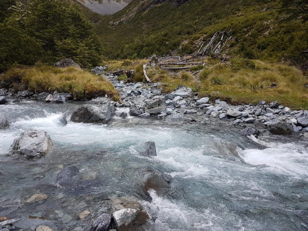 Das Schwierige ist, dass man im neuseeländischen Hinterland nirgends Handyempfang hat. Somit lag uns weder eine aktuelle Wettervorhersage vor, noch konnten wir Kontakt mit anderen Wanderern aufnehmen, die eventuell mehr über die Beschaffenheit des Tracks wissen.