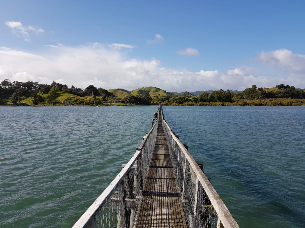 Am nächsten Morgen überquerten wir bei Whananaki die längste Fußgängerbrücke der südlichen Hemisphäre und genossen die Morgenstunden den Ausblick entlang der Küste – besser kann ein Tag gar nicht starten!