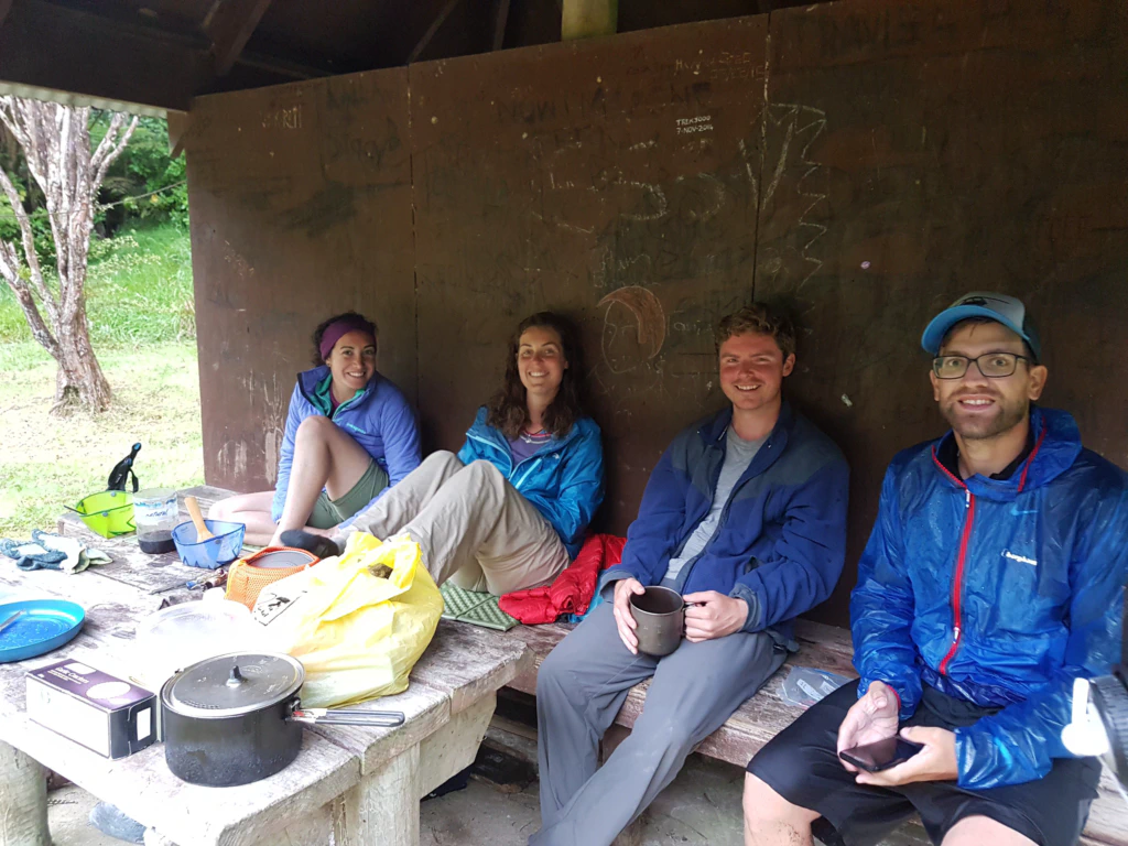 Der Pfad endete an einer kleinen Hütte, in der es sich bereits einige Wanderkollegen gemütlich gemacht haben. Wir beschlossen auf den Bänken der Hütte zu übernachten um uns das Zelten im Regen zu ersparen. Fehler! Die ganze Nacht wurden wir von Mücken geärgert, die uns kaum schlafen ließen…