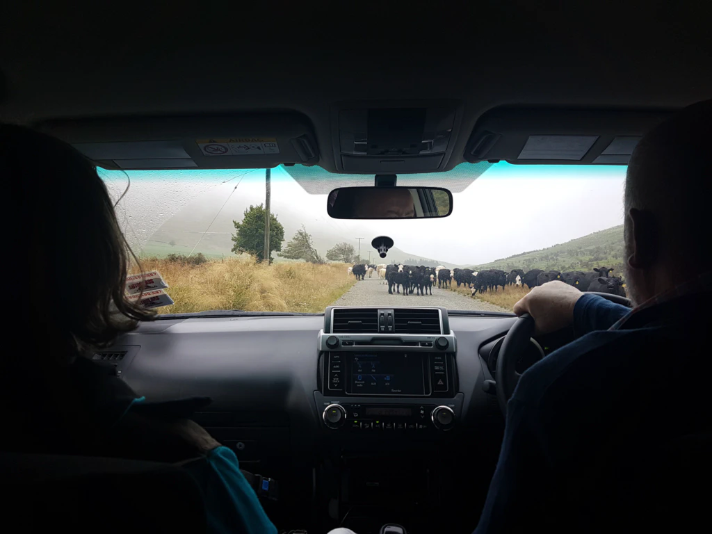 Wir wollen gerade schon in den Pub auf ein Mittagessen aufbrechen, da näherte sich ein Auto und hielt für uns an. Doug wohnt in dem letzten Haus, gerade mal einen Kilometer von unserem Trailstart entfernt. Normalerweise fährt er nur einmal die Woche raus um einzukaufen. Er war ausnahmsweise unterwegs um seine Schwester abzuholen, die ihn besuchte – und würde uns zum Trailstart mitnehmen! Was für ein Glück! Wir haben 120km in 3,5h per Anhalter zu einer der entlegensten Ecken Neuseelands zurückgelegt!