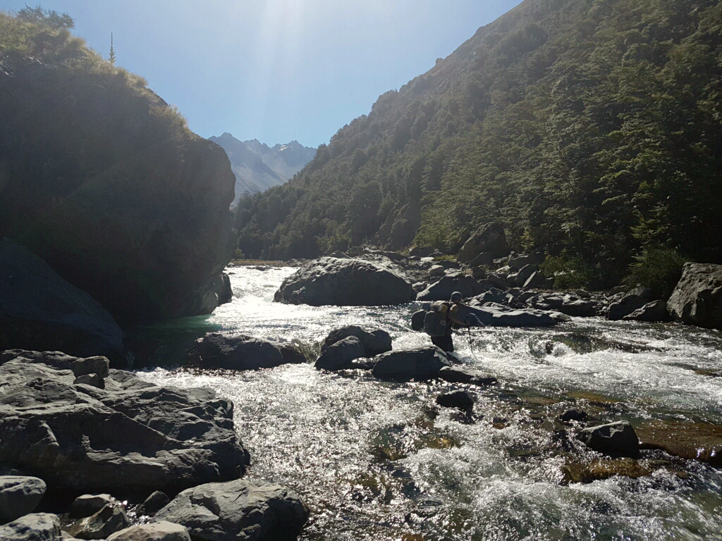 Der Bush Stream Track begann – der Name lässt es schon erahnen – mit unzähligen Flussdurchquerungen. Dieser Fluss wird im Laufe des Tages immer stärker, da er sich aus dem schmelzenden Eis der Berge speist. Ihn am späten Nachmittag zu durchqueren ist daher der ungünstigste Zeitpunkt. Unsere Wanderstöcke, die eigentlich zusätzliche Stabilität geben, zitterten in dem Strom. Einmal verlor ich fast den Halt. Was einem bei solchen Zwischenfällen durch den Kopf schießt? “Aaaaah, mein Handy!”