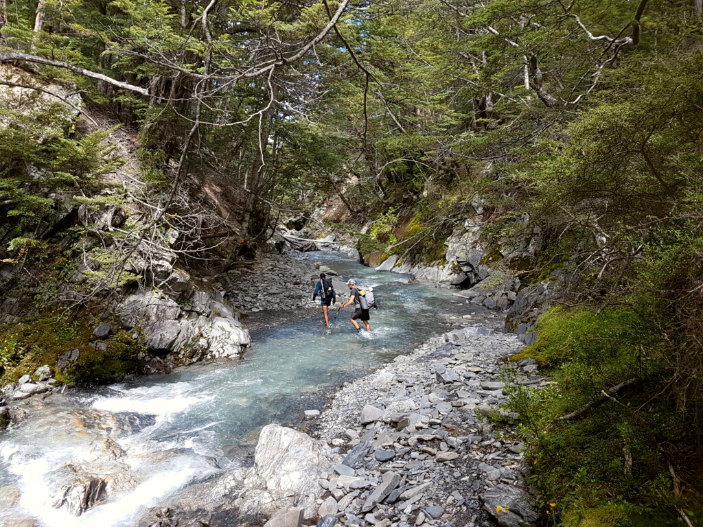 Der nächste Tag war laaaaaang: Überquerung des Martha Saddles, stundenlanges Ausweichen des Flusses Timaru (Wald hoch, am Berghang entlang, Wald wieder runter, Fluss queren und das ganze Spiel von vorne), 2km steiler Aufstieg zur mausversäuchten Stodys Hut, um dann kurzerhand zu beschließen, dass wir die restlichen 11 Kilometer zur Pakituhi Hut auch noch schaffen. Puh, was waren wir froh, als wir nach 38 Kilometern um 20 Uhr dort ankamen und sogar noch Matratzen für uns frei waren!