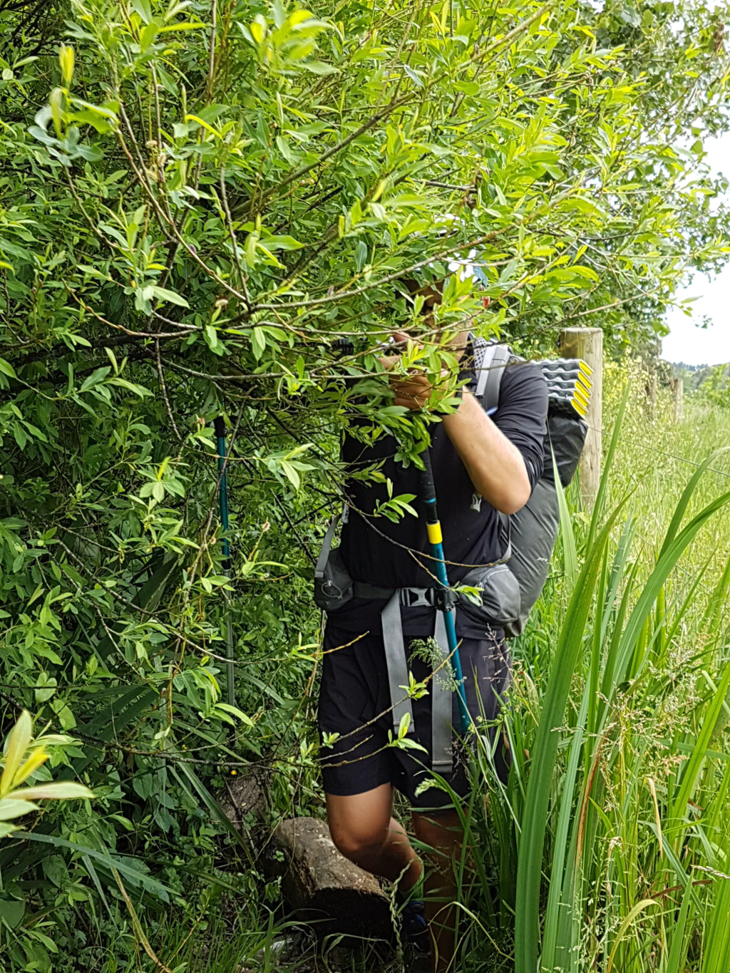 - Die Elektrozäune, die wir auf Farmland immer wieder über wackelige Stufen überqueren müssen, sind auch dann auf Spannung, wenn der Weg direkt daneben entlang führt und dicke Büsche im Weg hängen.