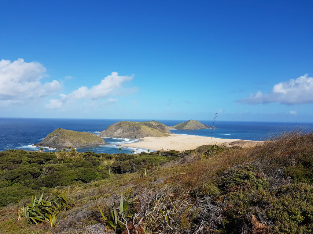 Cape Reinga – der Startpunkt unseres Abenteuers durch Neuseeland. Von dort geht es wunderschöne 20km durch Dünen mit tollen Ausblicken auf die vorgelagerten kleinen Inseln. Diesen Anblick sollte man sich lieber ganz genau einprägen, denn sobald man den 90 Mile Beach betritt, heißt es für die nächsten 3 Tage: rechts Meer, links Dünen, geradeaus Sand, Sand, Sand…