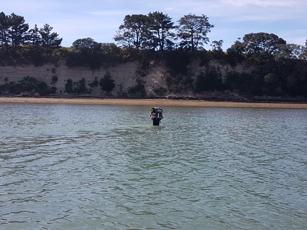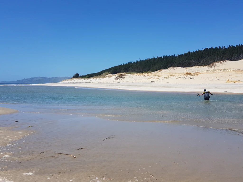 Heute ging es für uns nun nach Auckland – der erste große Meilenstein! Am Morgen stand aber erst noch eine weitere Flussdurchquerung an. Trotz Ebbe reichte uns das Wasser bis zur Brust – aber das ist ja schon Routine für uns!