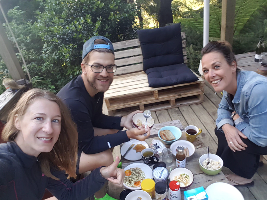 Wir gönnten uns an diesem Abend nochmal eine Nacht im Hostel (Coastal Cows Backpackers in Mangawhai Heads). Die Besitzerin hat ein gutes Marketingverständnis und in der Te Araroa-Facebookgruppe immer wieder Kuchen-Bilder gepostet, den sie für die Wanderer backt, die bei ihr einchecken. Bei mir hat das als Argument auf jeden Fall gezogen! Und der Karotten- und Bananenkuchen waren es wirklich wertkm